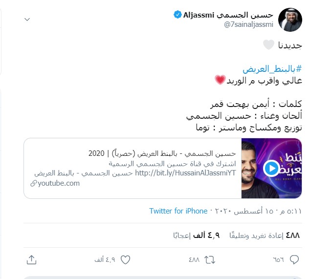 حسين الجسمي يعلن عن قرب طرح أعنيته كلنا العراق ومغردون الله