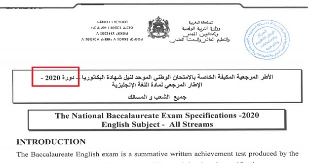 الاطار المرجعي لمادة اللغة الانجليزية بالامتحان الوطني الموحد لنيل