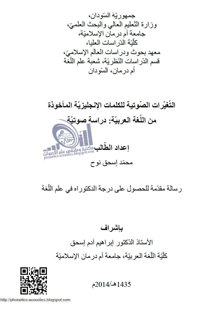 رسالة التغيرات الصوتية للكلمات الإنجليزية المأخوذة من اللغة